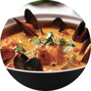 Fish, shrimp, mussels, crab leg & scallops. Perfect balance of tomatoes, garlic, onions, fresh cilantro, bell peppers and coconut milk. Served with side of rice.