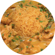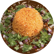 Chicken breast slowly cooked with Mexican spices, herbs and chocolate sauce, creating a mysterious dark sauce with very light sweet flavor. Crowned with toasted sesame seeds. Served with rice.